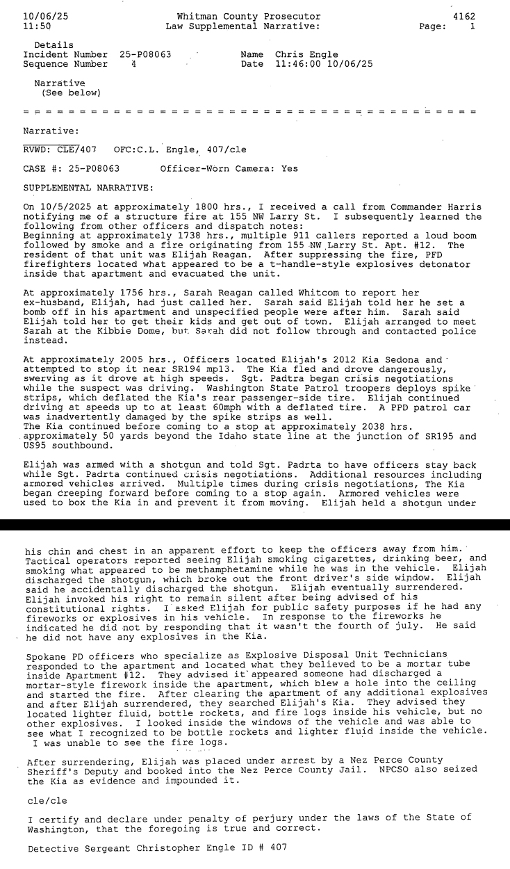 As detailed in court records, Reagan’s estranged wife told cops that he called her to say, “I bombed my apartment” and that “bad people” were after him.