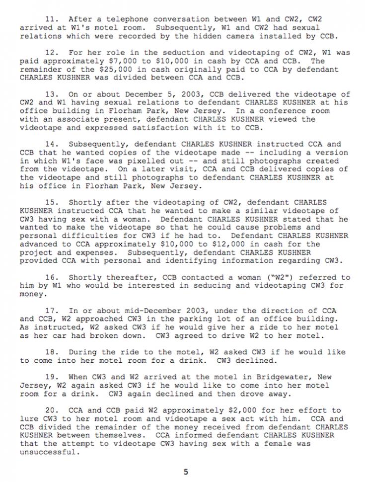 In fact, Kushner was so pleased with the gambit, he paid the PI around $10,000 to launch a similar operation targeting his former chief bookkeeper (who also was aiding prosecutors). But that effort--which involved a woman who was referred by the original escort--failed.