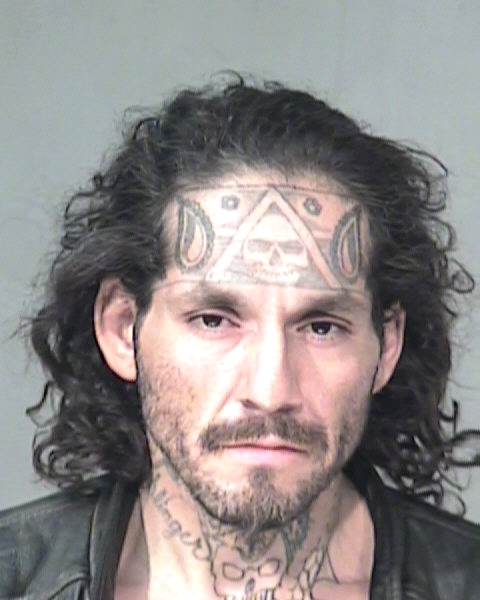 The forehead tattoo says "I live dangerously". The hair, soulless eyes, and hard face say "I'm just a retarded crackhead".