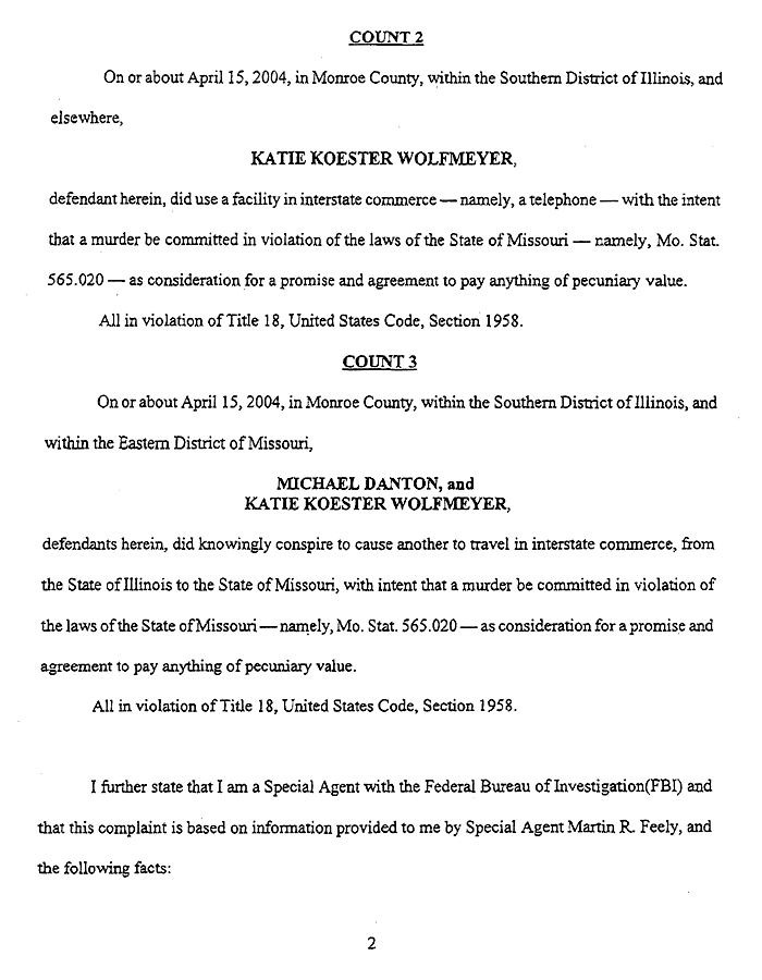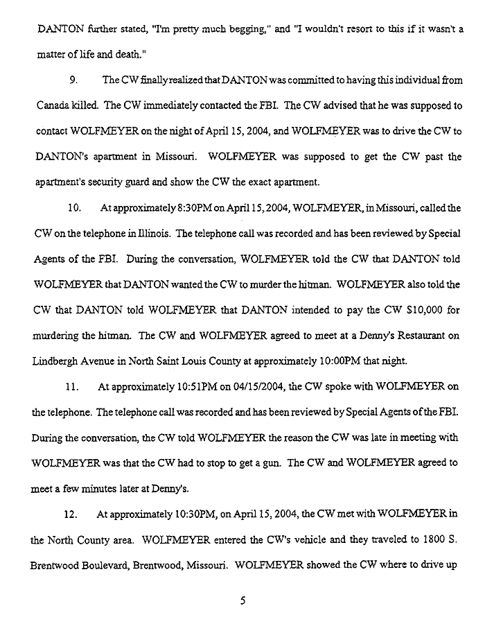 APRIL 19--Upset because his live-in male "acquaintance" was set to leave him, St. Louis Blues center Mike Danton hatched a murder-for-hire plot that failed when the supposed $10,000 hit man ran to the FBI. As a result, Danton, 23, was arrested last Friday (along with a 19-year-old female cohort) and charged with soliciting the murder of his roommate, who is not named in the below criminal complaint filed in U.S. District Court in Illinois. According to FBI agent John Jimenez, Danton and his roomie had fought over the hockey player's "promiscuity and use of alcohol," and the athlete feared his pal would go to "the General Manager of the St. Louis Blues hockey organization and ruin his career." To keep that from happening, investigators allege, Danton concocted a harebrained scheme that included a purported hit man coming down from Canada to kill him. (8 pages)